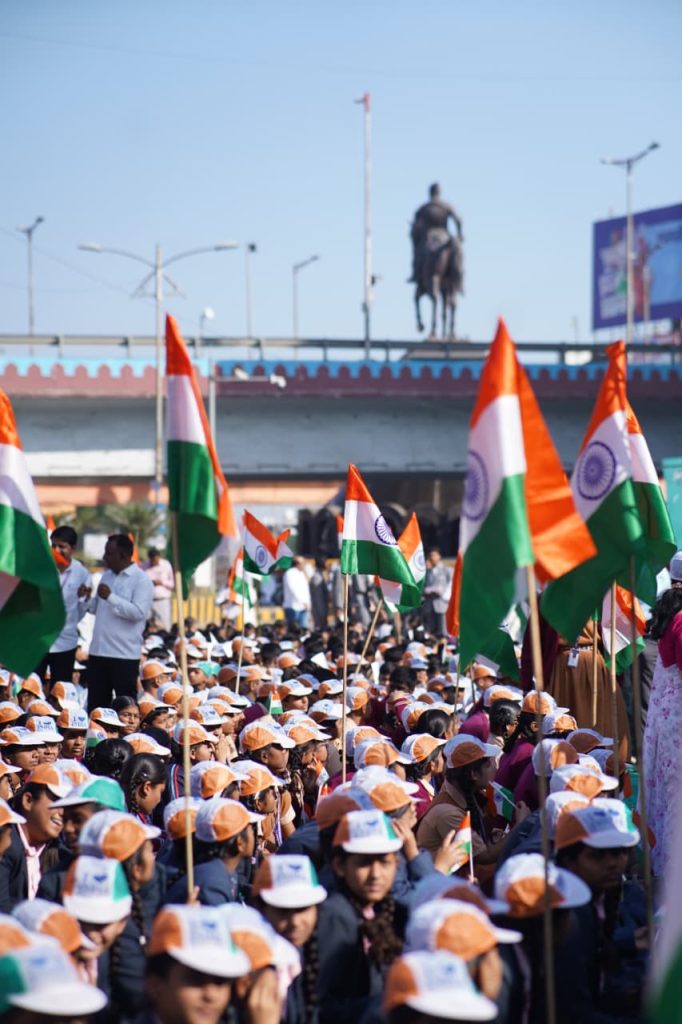 या भव्य कार्यक्रमात विद्यार्थी, नागरिक आणि कार्यकर्त्यांचा उत्स्फूर्त सहभाग घेऊन देशाप्रती असलेला आपले प्रेम व्यक्त केले..